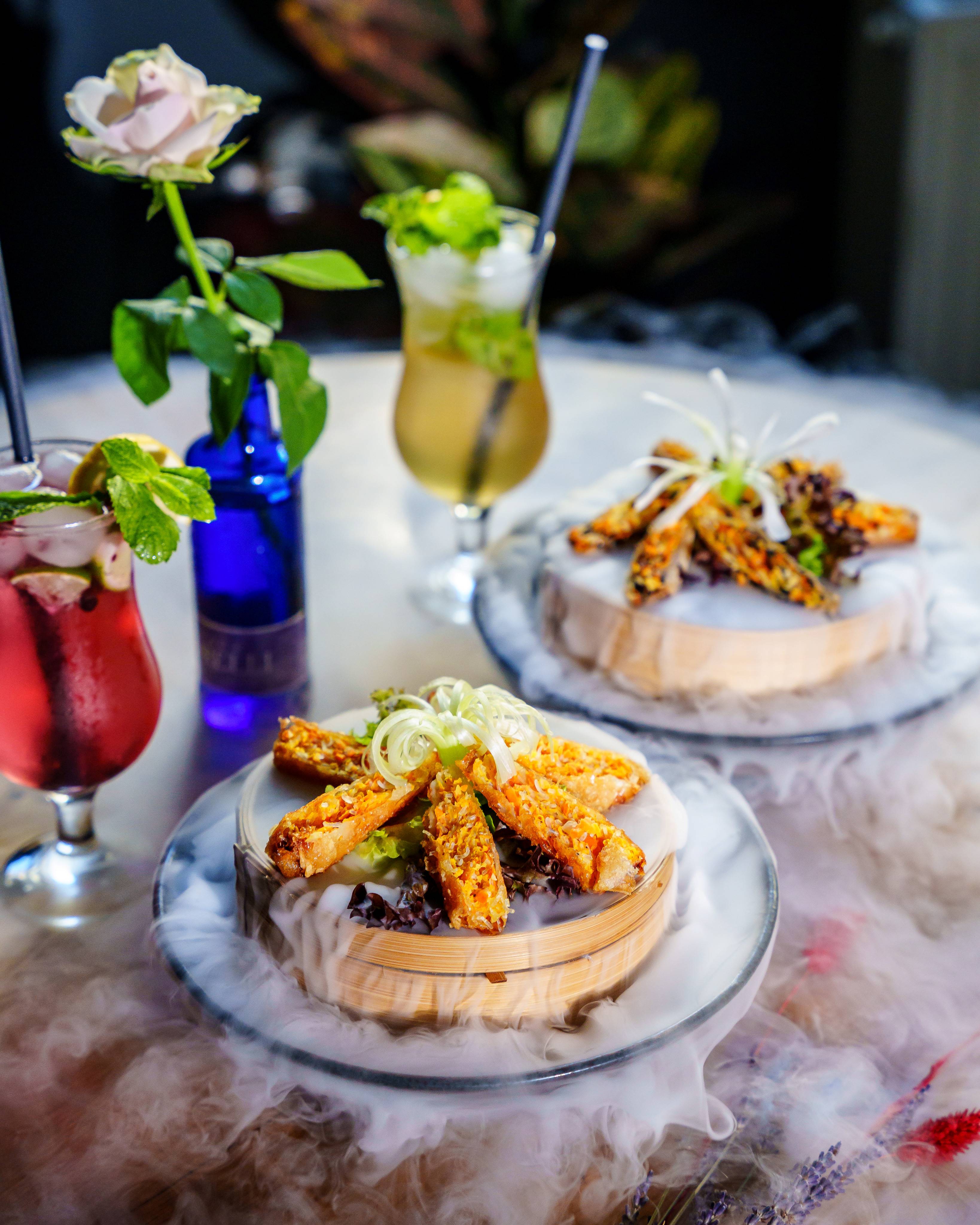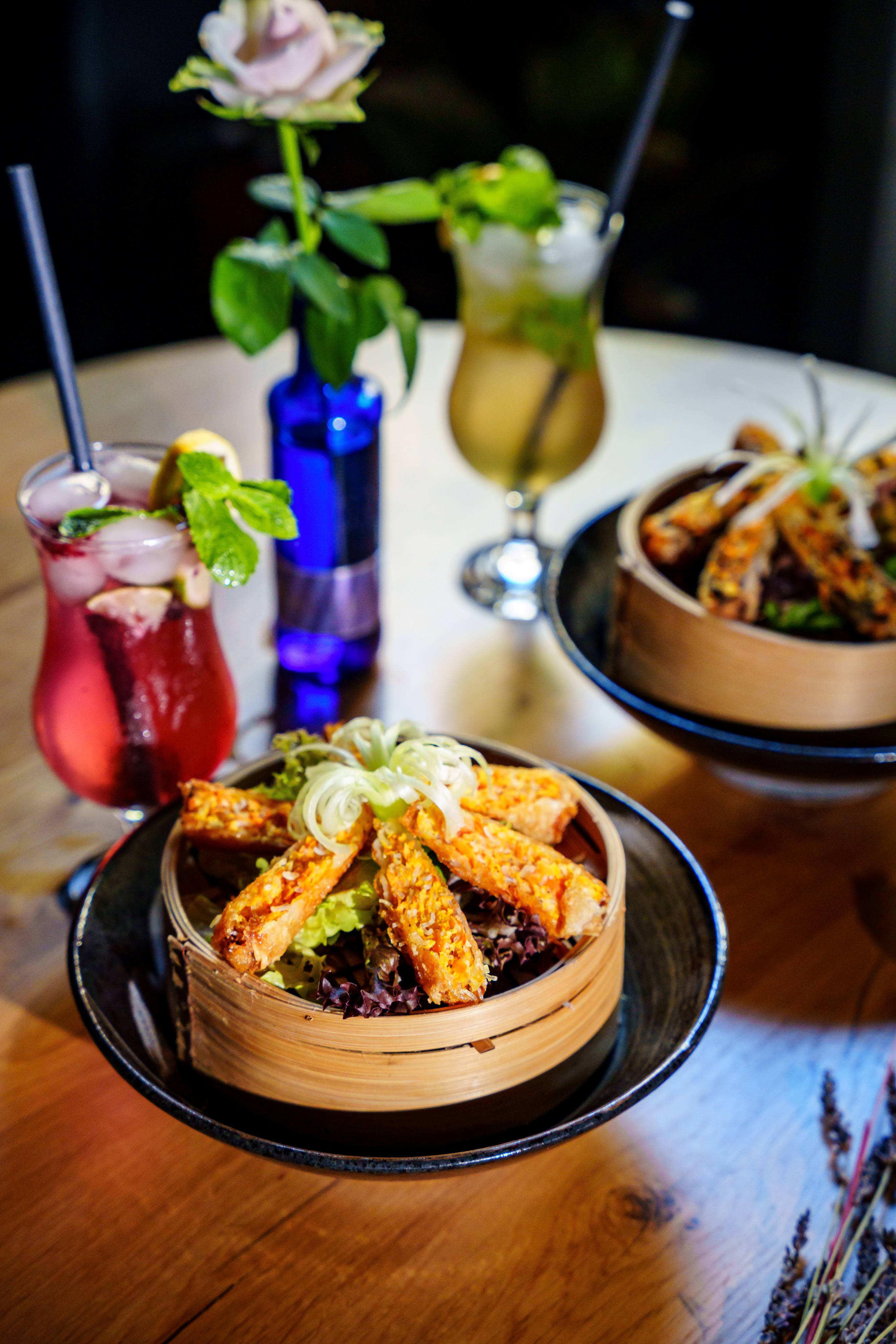 Zusammengesetzt aus zwei Frühlingsrollen mit Garnelen, einer Diamond Roll mit Hähnchen, zwei Ha Cao und zwei Tornado Shrimps