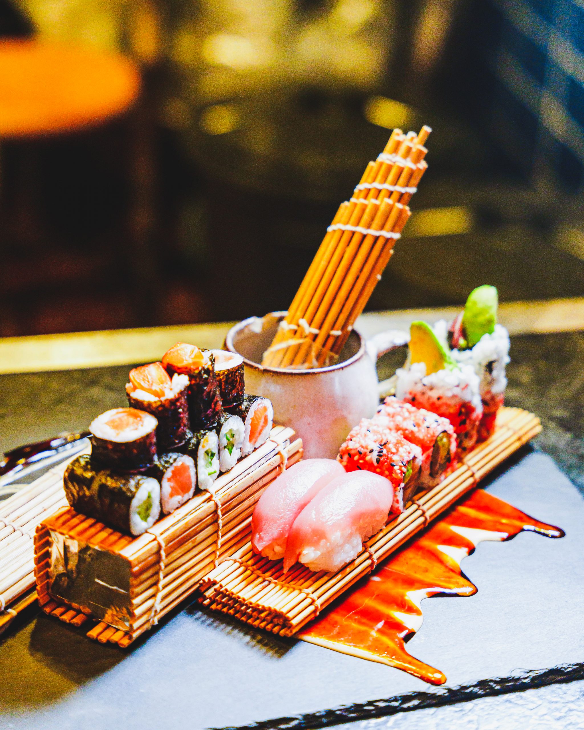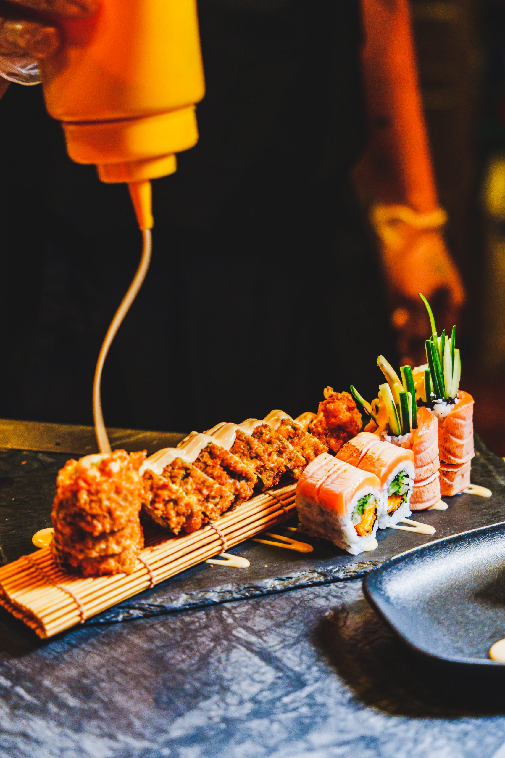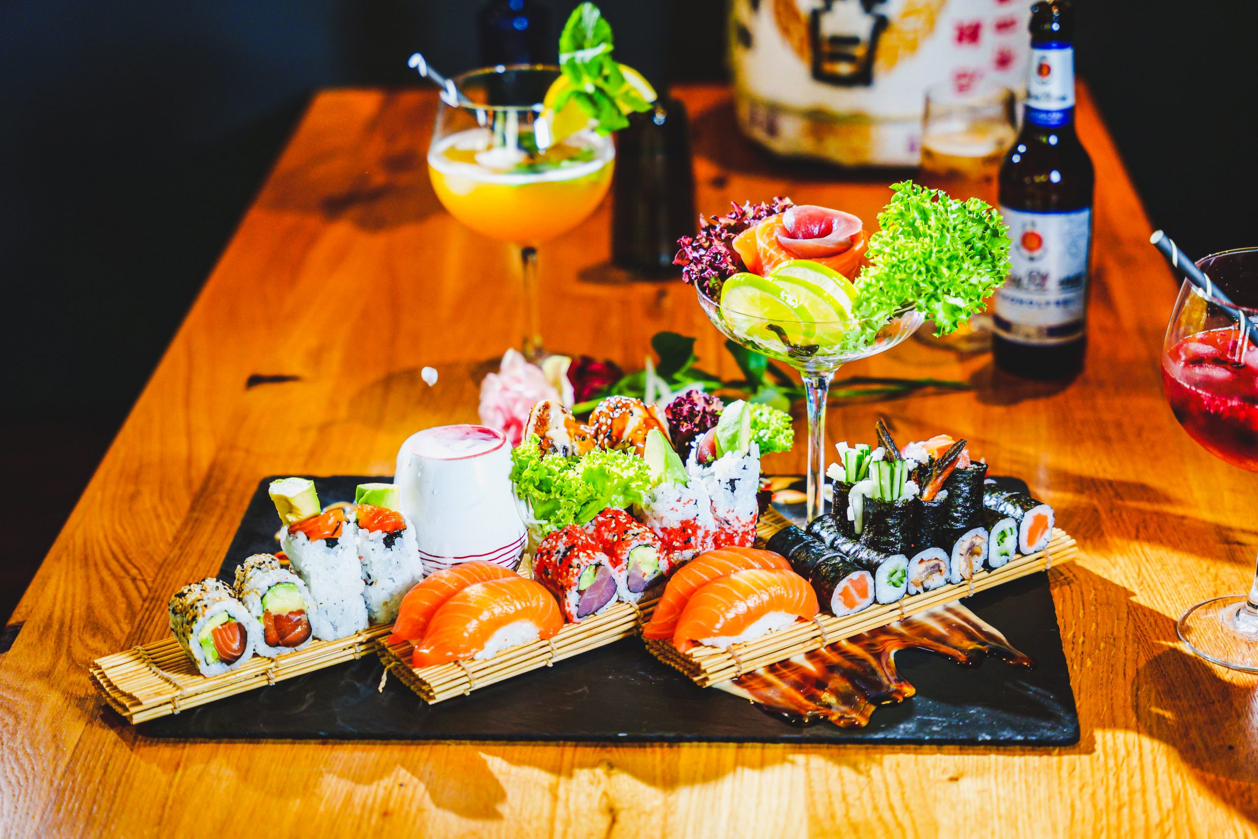 8 Salve Maki, 8 Kappa Maki, 4 Sake Sashimi, 8 Chicken Crunchy 2 Sake Nigiri,