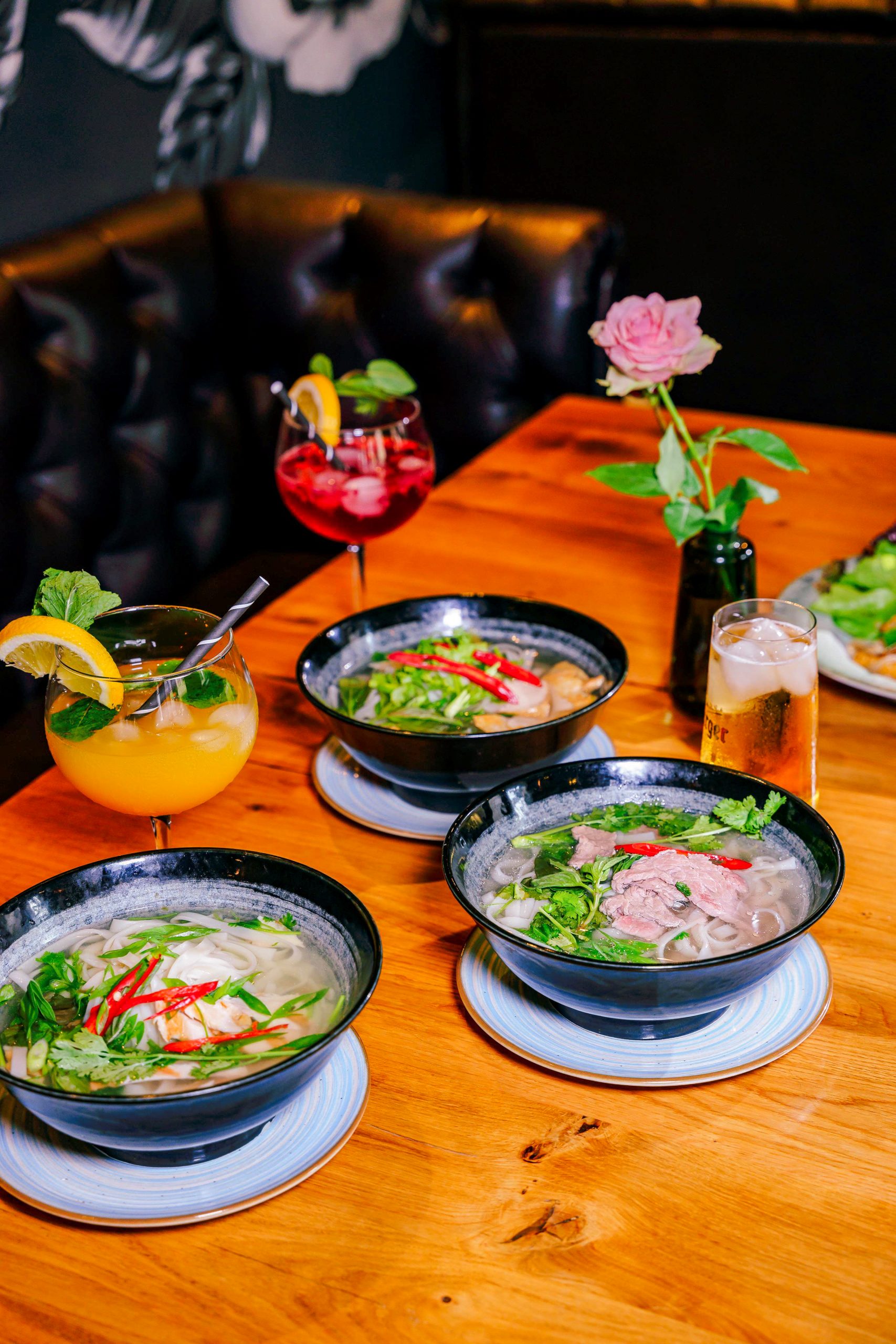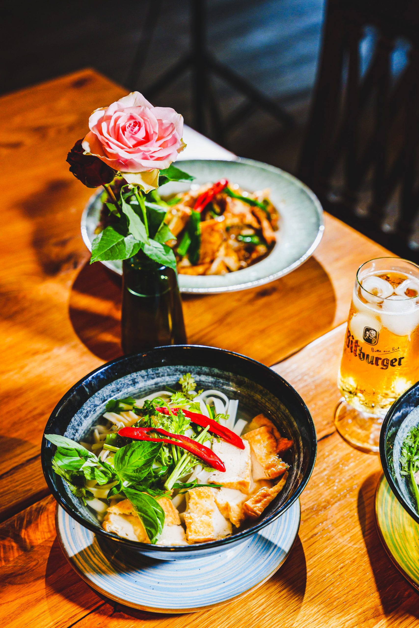 in unserer hausgemachten Brühe mit frischem Pak Choi, Shiitakepilzen,